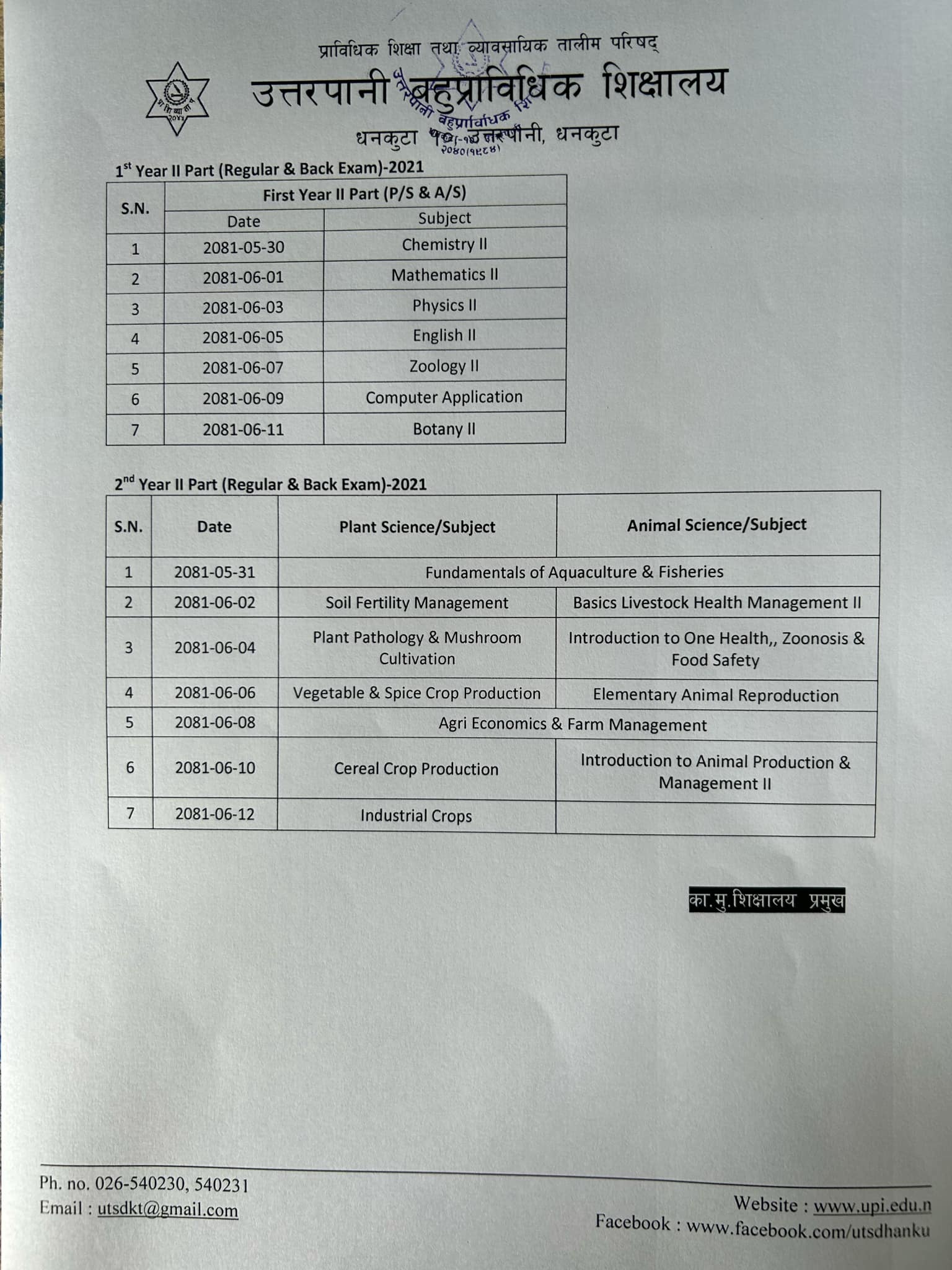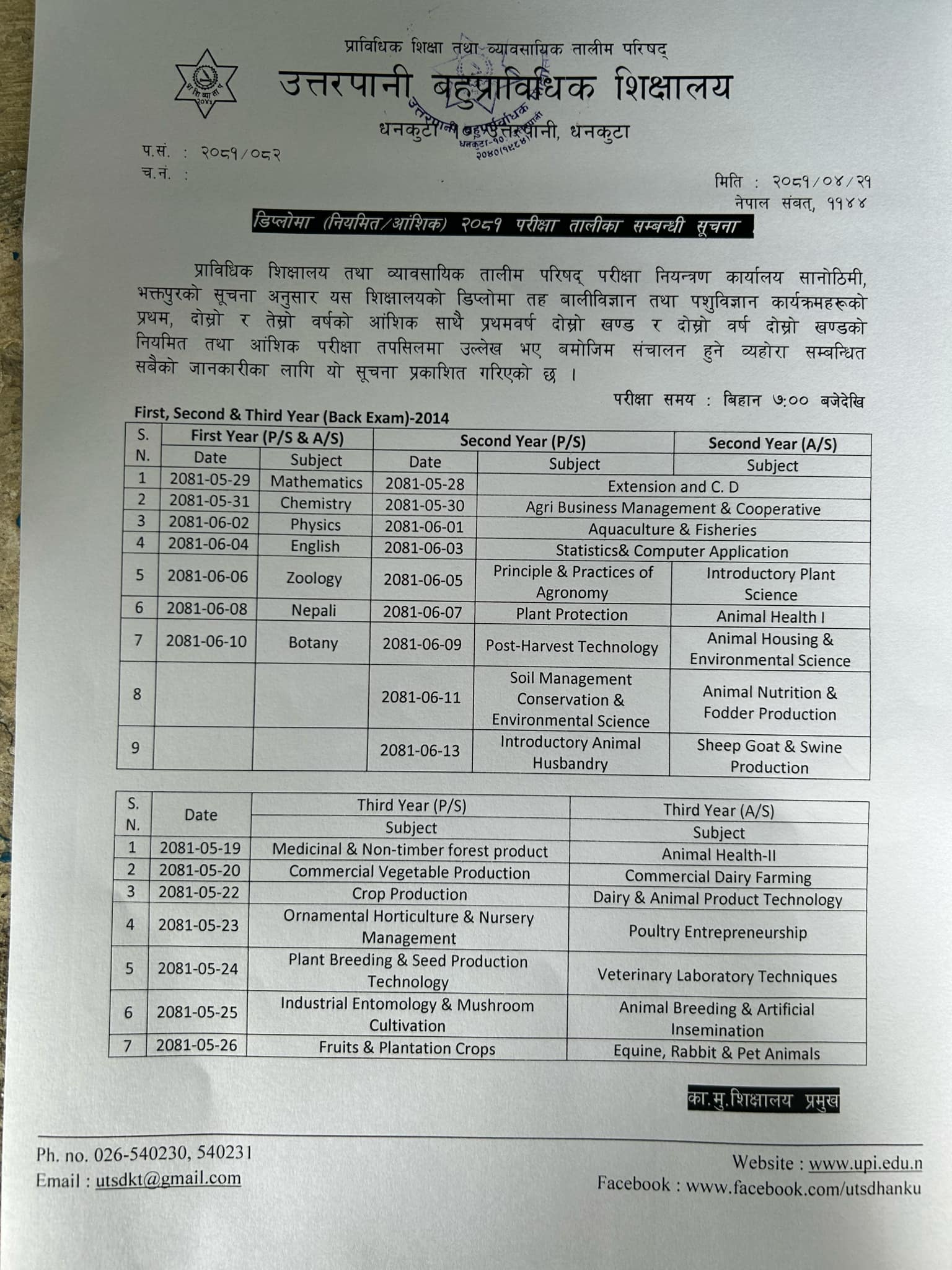 Diploma Level I-II_II_II & First, Second & Third Year Exam Schedule