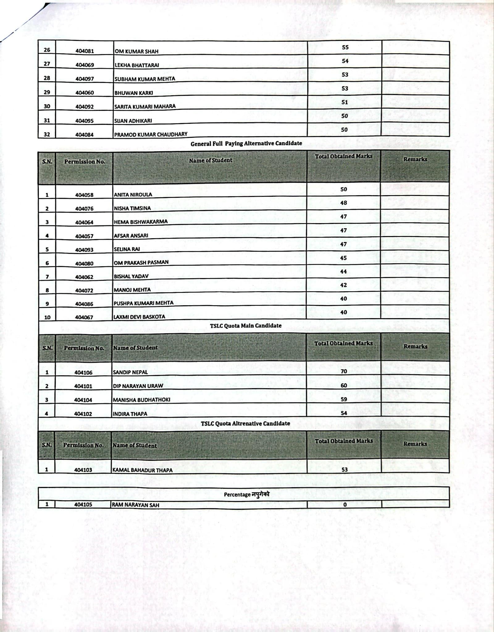 Entrance Result Diploma in Pharmacy